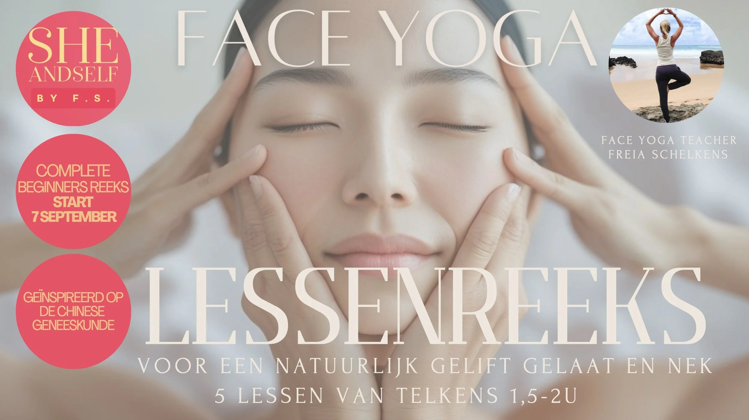 In deze unieke face yoga- reeks, leer je hoe je met doeltreffende oefeningen je gezicht op natuurlijke manier wijze verstevigt, ontspant en verjongt. Geen injecties, geen dure crèmes – maar een krachtig, bewezen systeem, voor je volledige gezicht en nek, dat werkt van binnenuit. Geïnspireerd op de Chinese geneeskunde, leer je hoe je met deze oefeningen niet alleen je gezicht verjongt, maar ook je hele systeem in balans brengt. Want ook in je gezicht weerspiegelen zich je organen, emoties en energiestroom. Wat je daar liefdevol aanraakt, werkt diep helend door. Ik geef je een complete methodiek mee die je een leven lang kan toepassen met zichtbare resultaten.